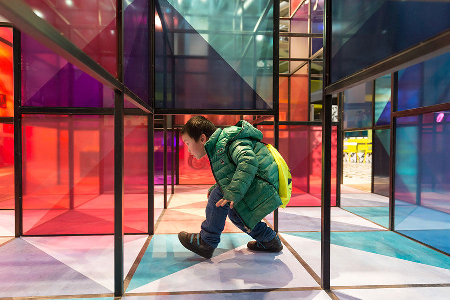 上海玻璃博物館館長張琳表示,“我們希望給孩子出口,兒童玻璃博物館2·0版,就是讓孩子可以碰、可以跳?!弊尯⒆咏夥盘煨缘耐瑫r,通過實物主動進行探索與學習。